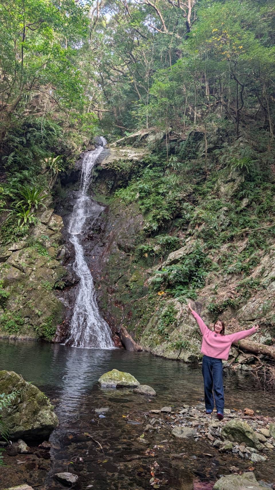 滝の流れを眺めたり水を触ったりして、自然を満喫する二人。また撮影では、滝を頭にのせたり手ですくったりしているような楽しい写真を撮ることができました。「散策道が整っていてアクセスしやすい世界遺産で、パワーをたくさん補充することができましたね!」と中島リポーター。空港からとても近い世界自然遺産エリアで、登山道入口には駐車場とトイレも整備されていますよ。さぁあなたも徳之島 天城町へ、「貴重な自然を楽しむ」ドライブを楽しんでみませんか。