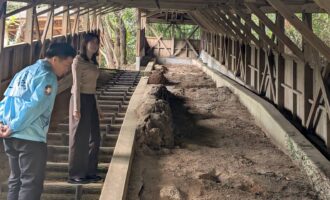 早速、沈壽官窯で薩摩焼を見学する二人。「きらびやかでとても品のある白薩摩ですね」と中島リポーター。登り窯も見ることができ、窯と一緒に一段ずつ登っている様子の写真を撮影しました!つづいては、「美山 竹林ロード」へ。整備された、とてもきれいな竹林の中を歩くことができます。まさに美山にぴったりの風景です。散策していくと、昔使われていた登り窯の跡「堂平窯跡」があります。仕切りのない貴重な窯跡が移設保存されているんですよ。また、不要になった陶器片の捨て場跡もあります。美山には工房やおしゃれなカフェもあるので、ゆっくり過ごすのにはピッタリの場所!次回は認定地を巡ります。後編もどうぞお楽しみに。